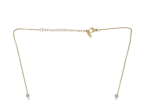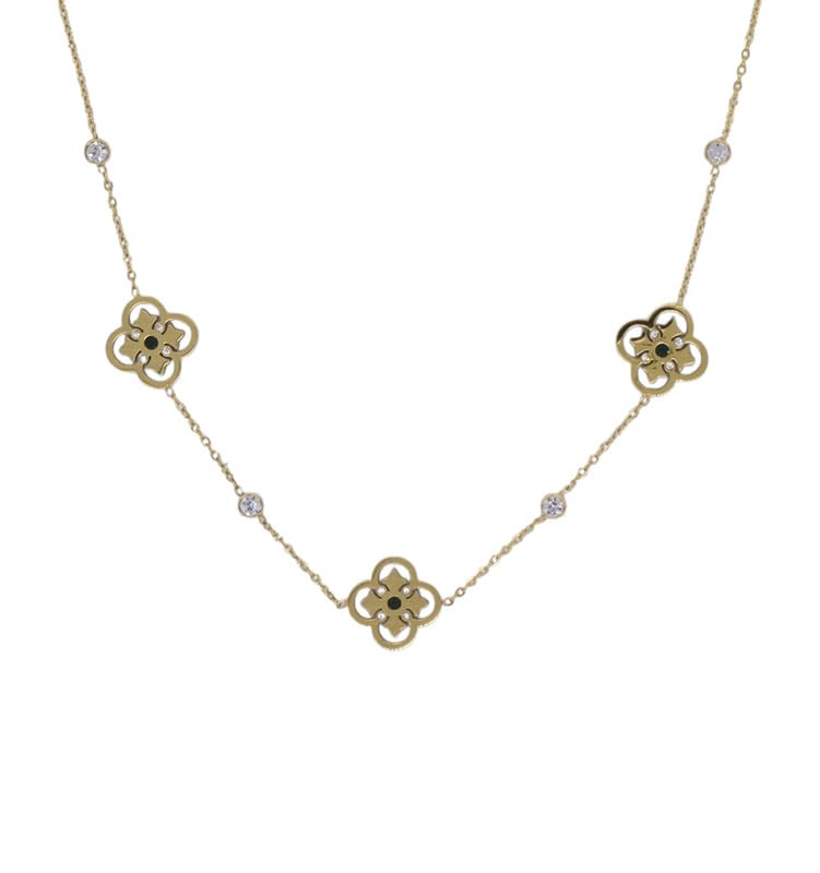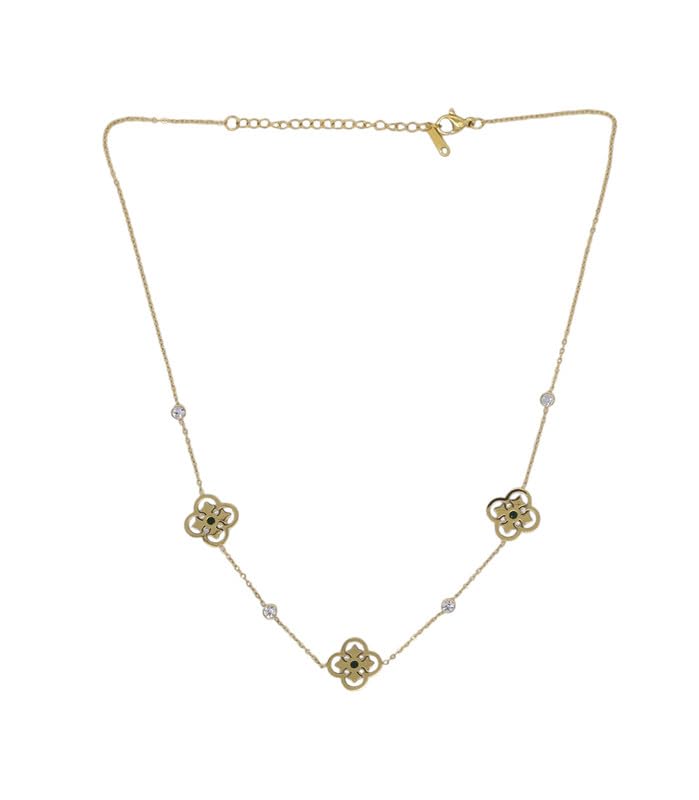 Generic - Stainless Steel Clover Station Necklace with Clear Stone Accents for Women – Gold