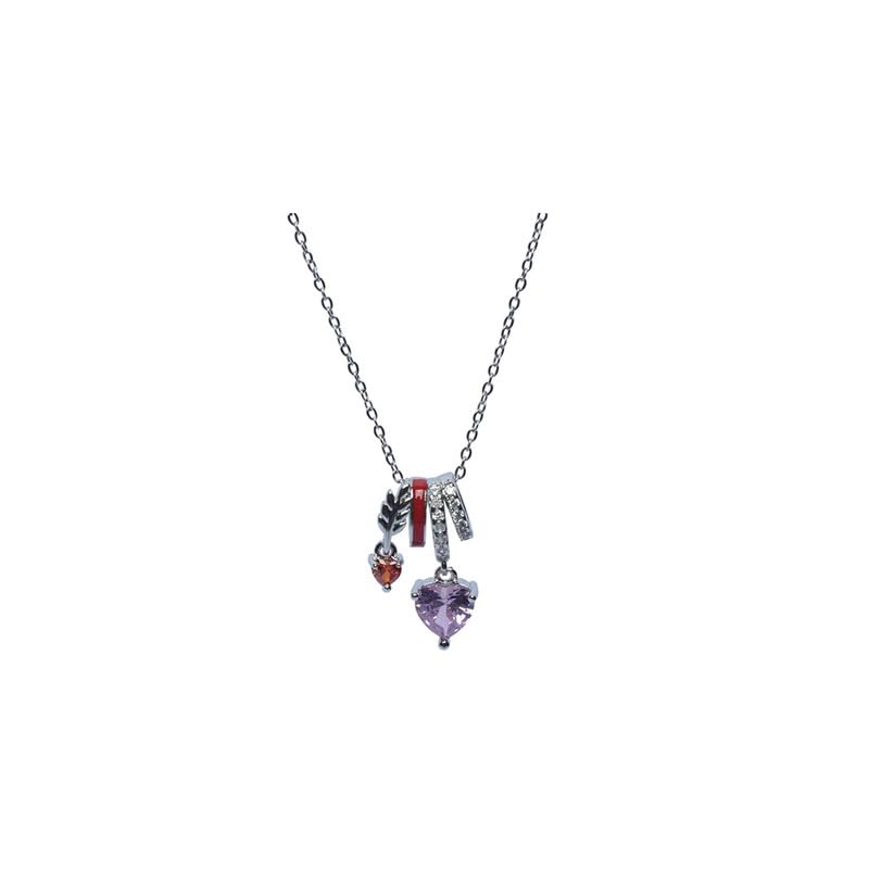 Generic - Stainless Steel Cluster Heart Charm Pendant Necklace For Women – Silver