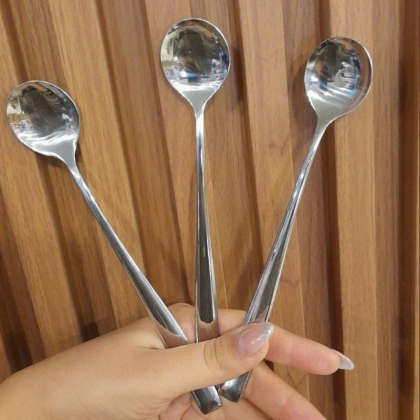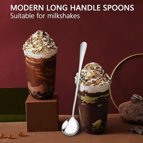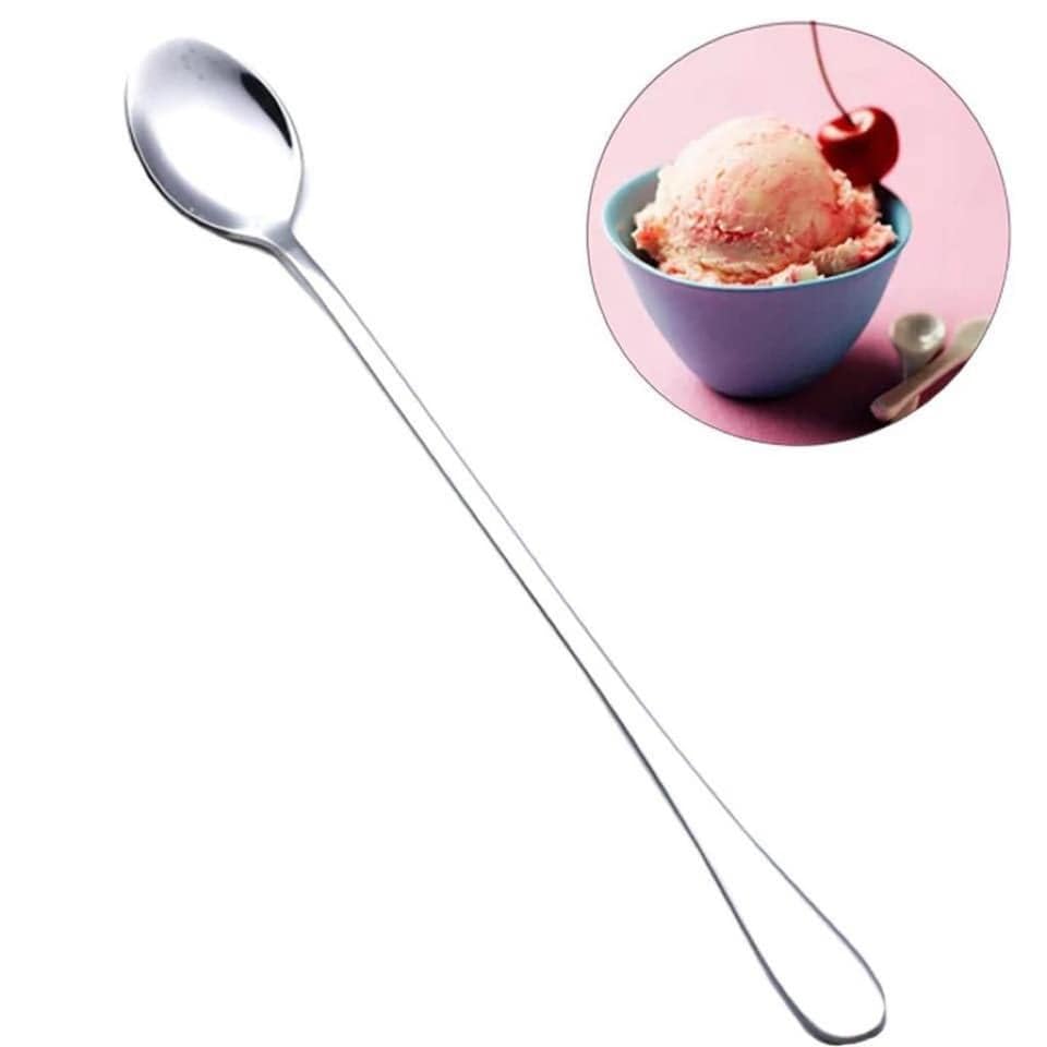 Generic - ملاعق كوكتيل وسموذي من الستانلس ستيل للاستخدام في النظارات والأكواب الطويلة والايس كريم وسهلة التنظيف، مجموعة من 3 قطع