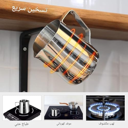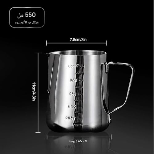 Generic - Stainless Steel Coffee Jug - Ergonomic Handle and Precise Scale, Stylish Curve Design, Suitable for Cafés, Bars, and Food Service Environments (550ml)
