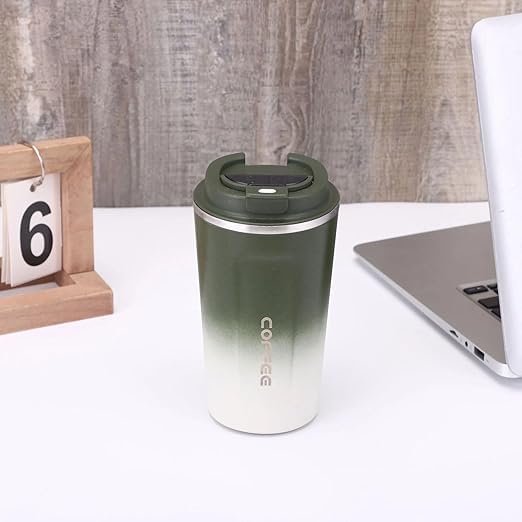 Generic - مج قهوة الستانلس ستيل بسعه 380مل بجدار مزدوج بتصميم مانع للتسرب وغطاء قلاب شاي قابل لاعادة الاستخدام بحجم سهل الإمساك به للمشروبات الساخنة والباردة Green