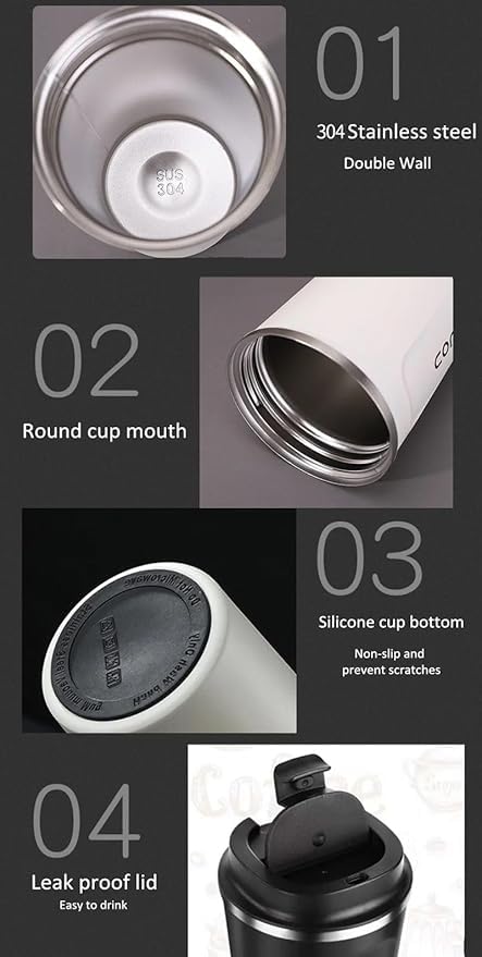 - ☕يحافظ على مشروبك ساخنًا أو باردًا: كوب القهوة هذا مصنوع من الستانلس ستيل بجدار مزدوج عالي الجودة للحفاظ على مشروبك دافئًا أو باردًا لمدة تصل إلى 6 ساعات. يضمن التركيب المصنوع من الستانلس ستيل 304 أيضًا نكهة مشروب يدوم طويلًا دون رائحة غريبة. ☕كوب السفر بحجم مثالي: تبلغ سعة كوب السفر المحمول 380 مل، وهو يناسب حامل أكواب السيارة تمامًا أثناء التنقل. لا يزال خفيف الوزن حتى أنه مليء بالمشروبات.