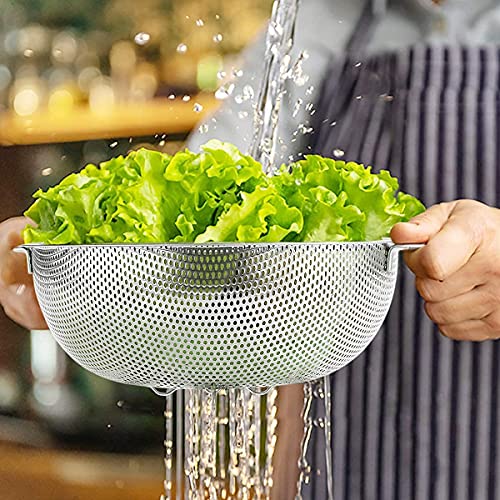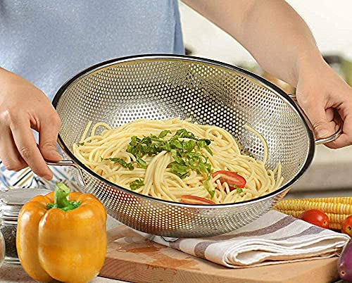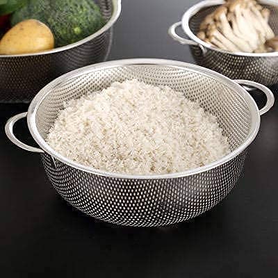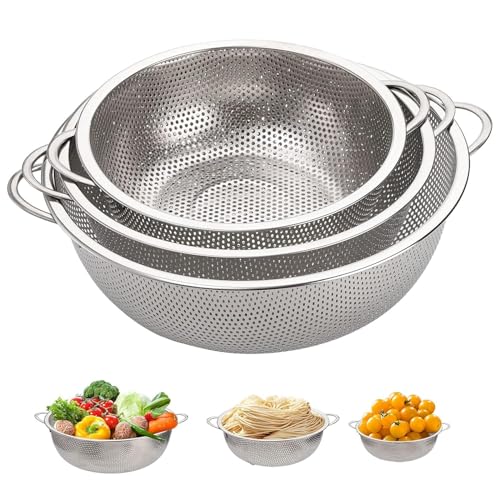 Matiko - Stainless Steel Colander Rice Washing Bowl Basket Rice Sieve Colander Kitchen Strainer Drainer Set with Handle (3 PCS Set)