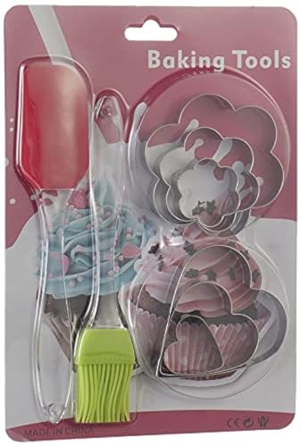 Other - Stainless Steel Cookie Cutters with Oil Brush and Spatula Set, 6 Pieces - Multi Color