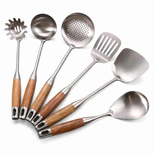 Generic - Stainless Steel Cooking Utensils Set 6 Pieces with Wooden Handle – طقم أدوات مطبخ مع حامل