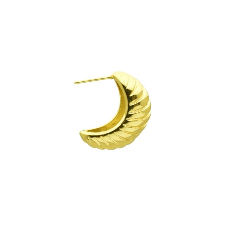 Generic - Stainless Steel Croissant Puffy C-Hoop Stud Earrings for Women – Gold