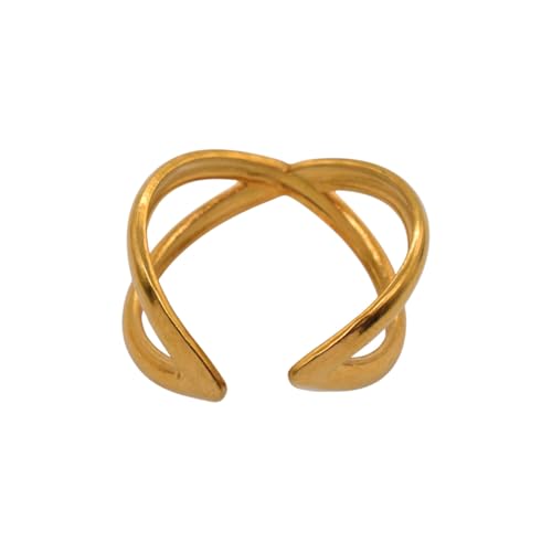 Generic - Stainless Steel Curved Shape Women's Ring, Free Size - Gold FA364
