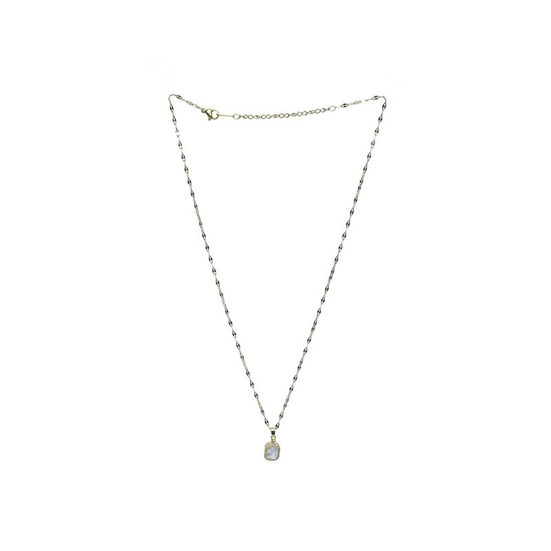 Generic - Stainless Steel Cushion-Cut Halo Pendant Necklace For Women – Gold