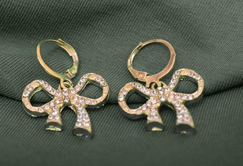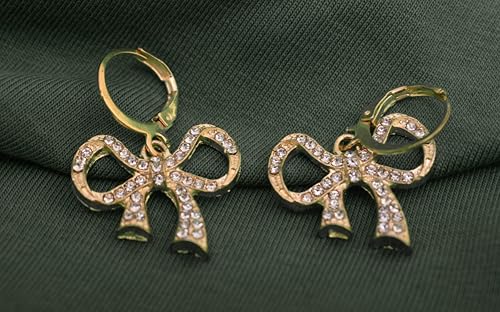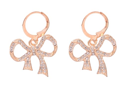 Generic - Stainless Steel Cute Bow Stud Earrings with Shiny Crystal for Women, Gold TON-A-1045