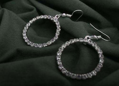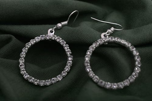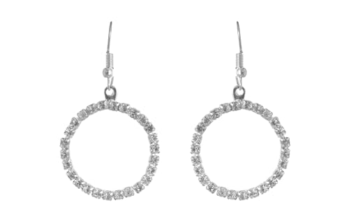 Generic - Stainless Steel Cute Circle Shape Shiny Crystal Stud Earrings for Women Wedding Party Occasion, Silver TON-A-1099