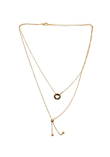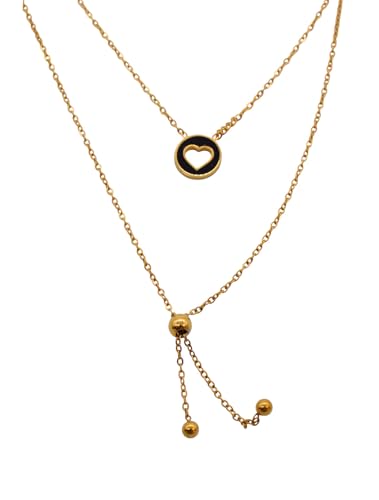 Generic - Stainless Steel Cutout Black Heart and Dangling Chain Multi-Layered Necklace For Women - Gold