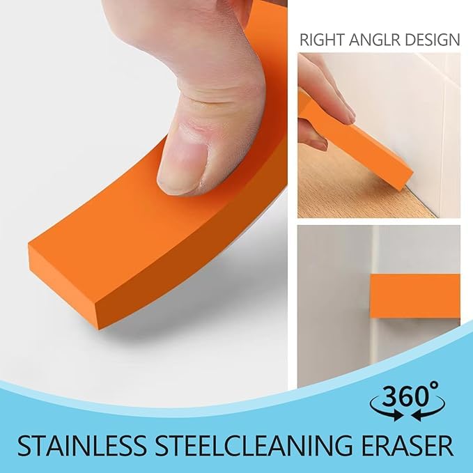 - Multi Functional Use: Suitable for home and restaurant environments, it can easily remove scale from stainless steel items such as pots, kettles, faucets, range hoods, shower heads, sinks, tableware, etc. The square corner design can also clean gaps.