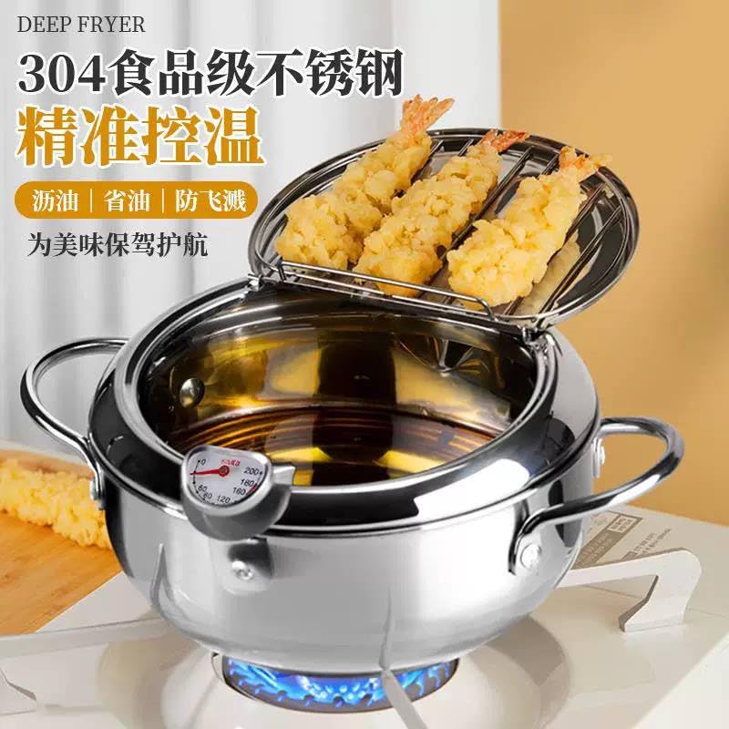 Generic - Stainless Steel Deep Fryer with Temperature Gauge and Draining Rack, 2.2L Capacity