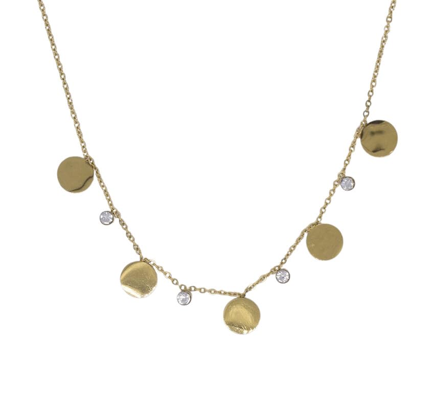 Generic - عقد بقرص ستانلس ستيل وحجر شفاف للنساء - ذهبي