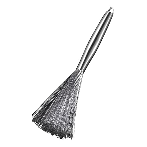 - [Convenient to clean] Stainless steel brush will not hide food residues, rinse directly with water after use. Metal brush helps clean all pots made of cast iron and stainless steel effortlessly, the brush cleaner is designed with hundreds of stainless steel wires, it is flexible and effective to remove rust, burnt stains and food residues on the pot coating, perfect cleaning with ventilation, much easier than a traditional brush.