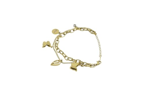 Generic - Stainless Steel Double Layer Butterfly & Leaf Charm Bracelet for Women - Gold