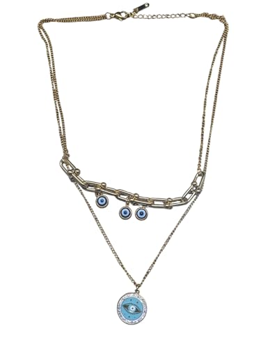 SMARTEDGE - Stainless Steel Double Layer Eye Chain Necklace Vintage Women Jewelry