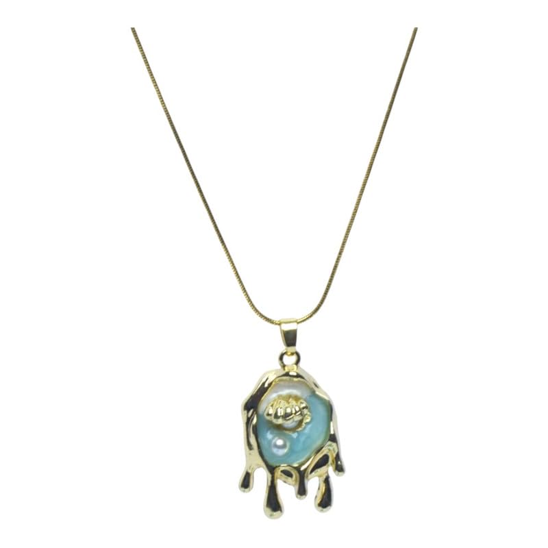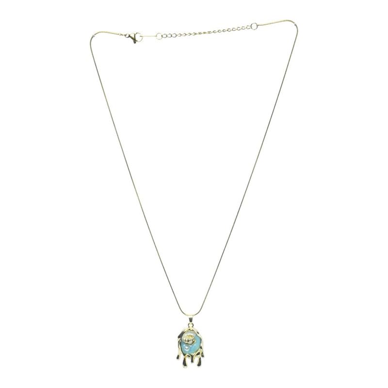 Generic - Stainless Steel Dripping Edge Aqua Enamel Pendant Necklace For Women – Gold Blue