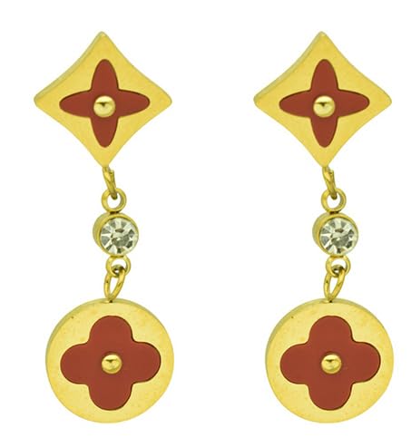 Generic - اقراط متدلية من الستانلس ستيل للنساء - ذهبي ونبيتي