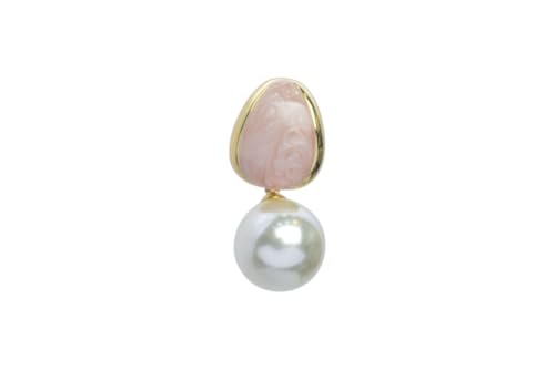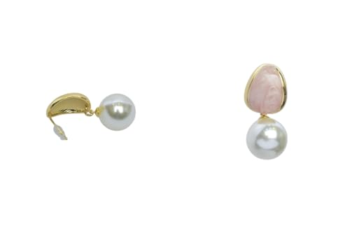 Generic - Stainless Steel Drop Earrings with Marbleized Top and Pearl for Women - Gold Pink