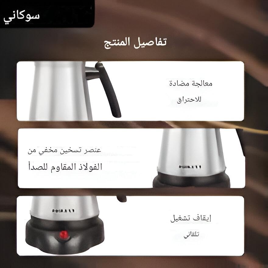 - مناسبة لتحضير مجموعة متنوعة من المشروبات الساخنة، بما في ذلك القهوة، الشاي، الشوكولاتة الساخنة، وغيرها، مع نظام أمان عالي الأداء لحماية المستخدم أثناء التشغيل وخصائص إيقاف تلقائي عند الغليان.