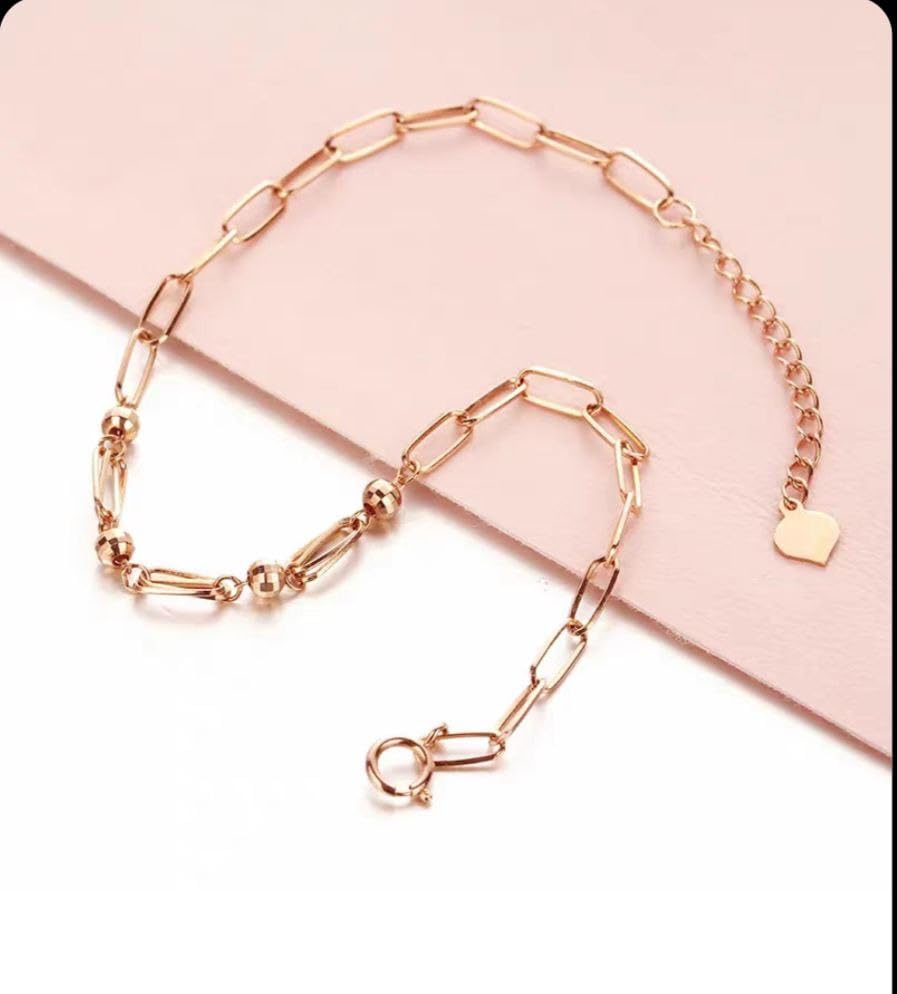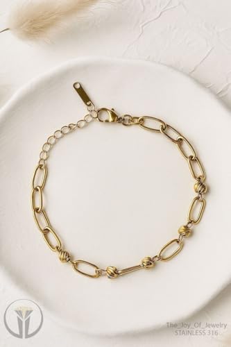 Generic - Stainless Steel Embeaded Chain Bracelet For Women - Gold