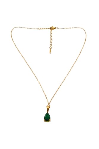 Generic - Stainless Steel Emerald Green Gemstone Pendant Necklace For Women - Gold
