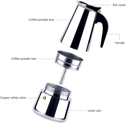 Spaceshoop - ماكينة تحضير الإسبريسو من الفولاذ المقاوم للصدأ على الموقد لتحضير القهوة الإيطالية والموكا (2 كوب - 100 مل، فضي)
