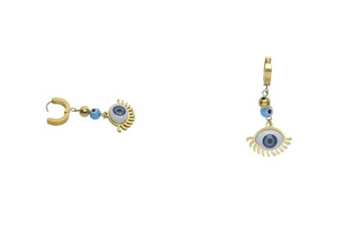 Generic - Stainless Steel Evil Eye Dangle Earrings for Women - Gold Blue