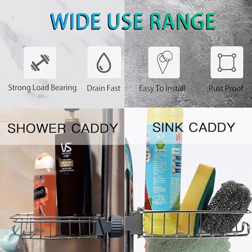 - [Upgrade Bathroom Rack Kitchen Sink Gadgets]: Top Hook Design 360 Degree Rotation to Move Up and Down.No drilling, screws or glue required and can be easily removed without leaving marks or sticky residue.