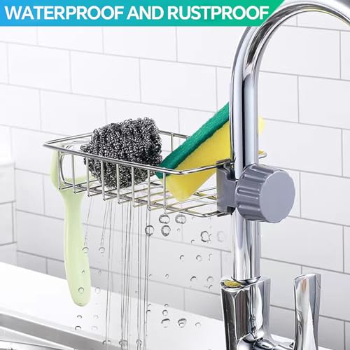 - [HIGH QUALITY MATERIAL]:The kitchen faucet rack is made of stainless steel material, which has the characteristics of anti-rust, anti-scratch, anti-deformation and so on.Strong Bearing Capacity ensure this kitchen organizer sink caddy lasts for years to come.