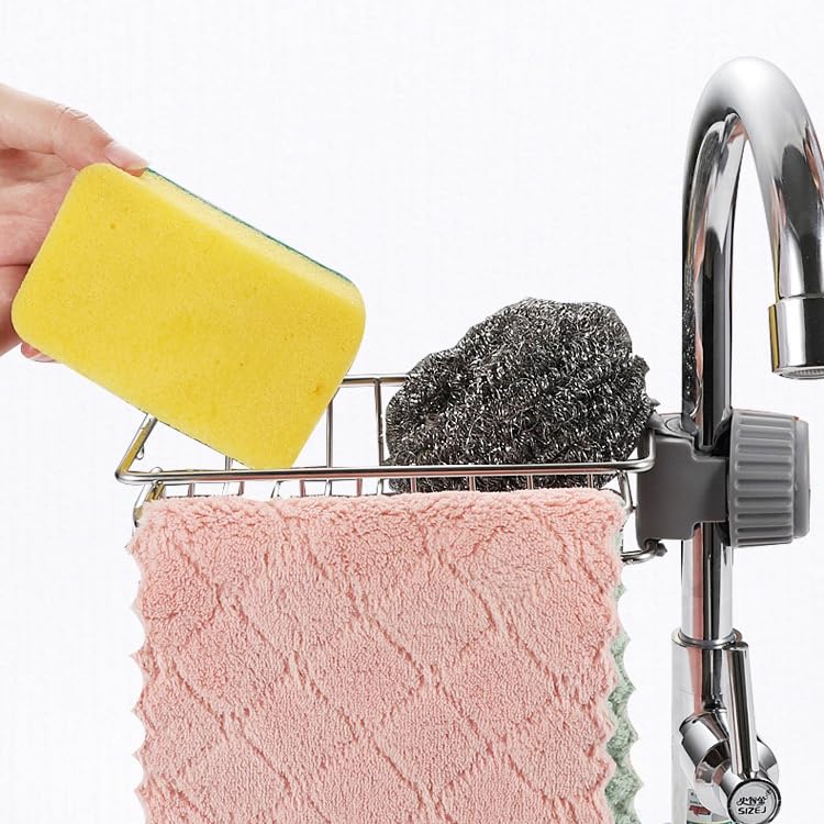 - [SPACE - SAVING]:The faucet rack could be mounted on the faucet, saves your space and keeps your kitchen sink tidy and dry.You can use this kitchen sink rack organizer in kitchens as well as in your bathrooms and other scenes.We guarantee unconditional refunds, as long as you are not satisfied