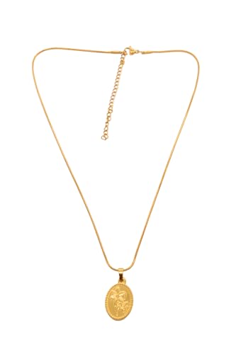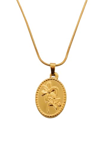 Generic - عقد بقلادة على شكل عملة معدنية محفورة بالزهور من الستانلس ستيل للنساء - ذهبي