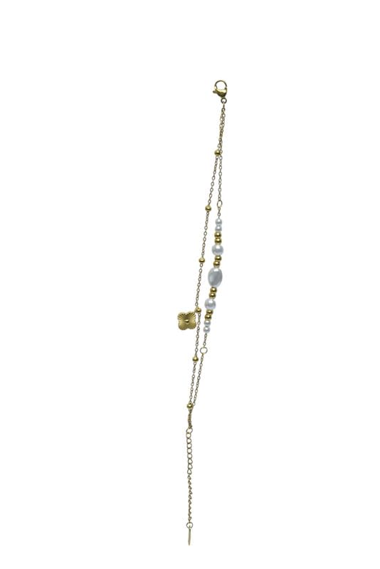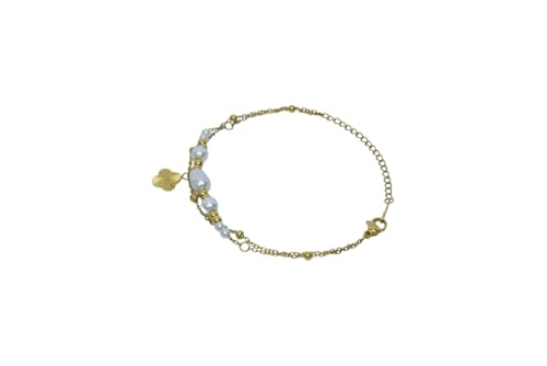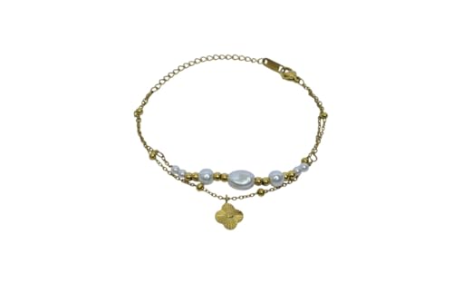 Generic - سوار من الستانلس ستيل بتصميم زهرة للبنات - ذهبي وابيض - 164