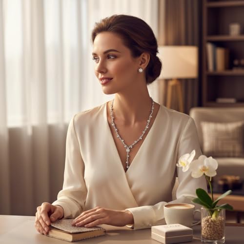 Generic - Stainless Steel Flower Necklace Set & Earing For Girl - Silver
