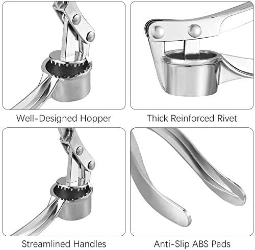 - تصميم معقول: مع قادوس ومكبس مصممين بشكل جيد، يمكنك الحصول على ثوم ناعم وسلس عن طريق عصر القرنفل في مفرمة الثوم هذه