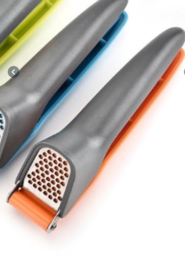 Generic - Stainless Steel Garlic Masher with Plastic Handle, Press Grater Ginger Crusher Garlic Chopper (grey/orange) هراسة الثوم من الفولاذ بمقبض بلاستيكي، مبشرة الزنجبيل، مفرمة الثوم (رمادي/برتقالى)