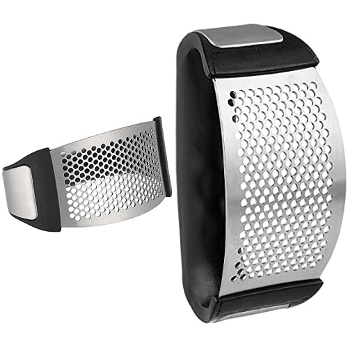 Generic - Stainless steel garlic press with handle - silver and black + Stainless steel garlic presser with plastic handle - silver black