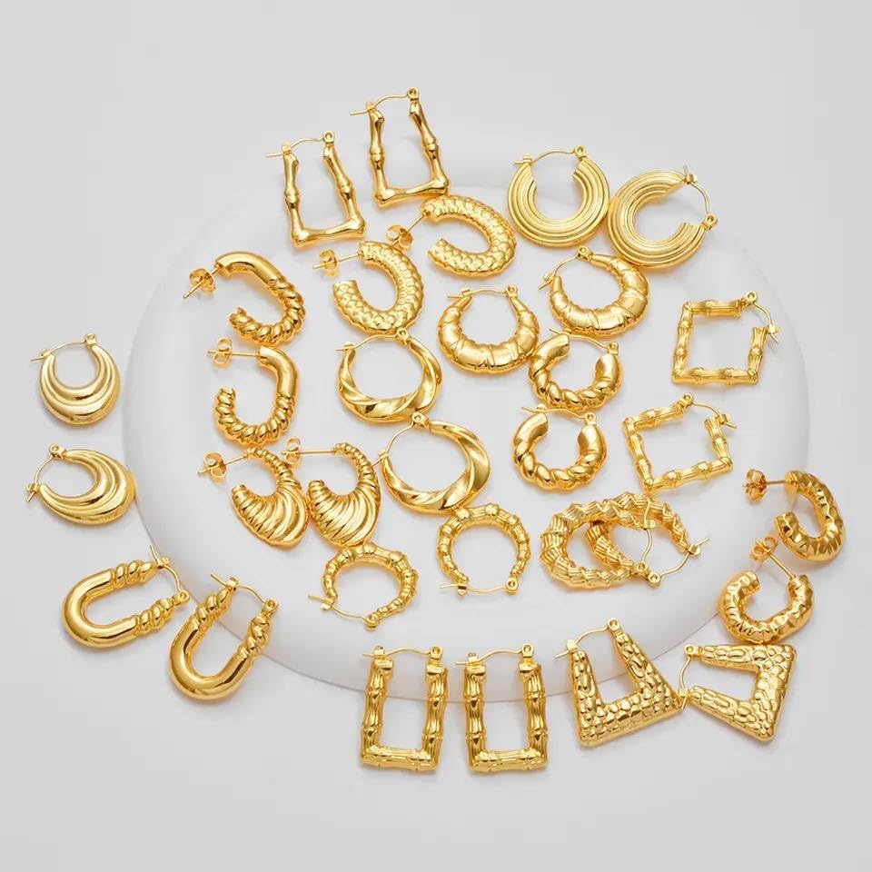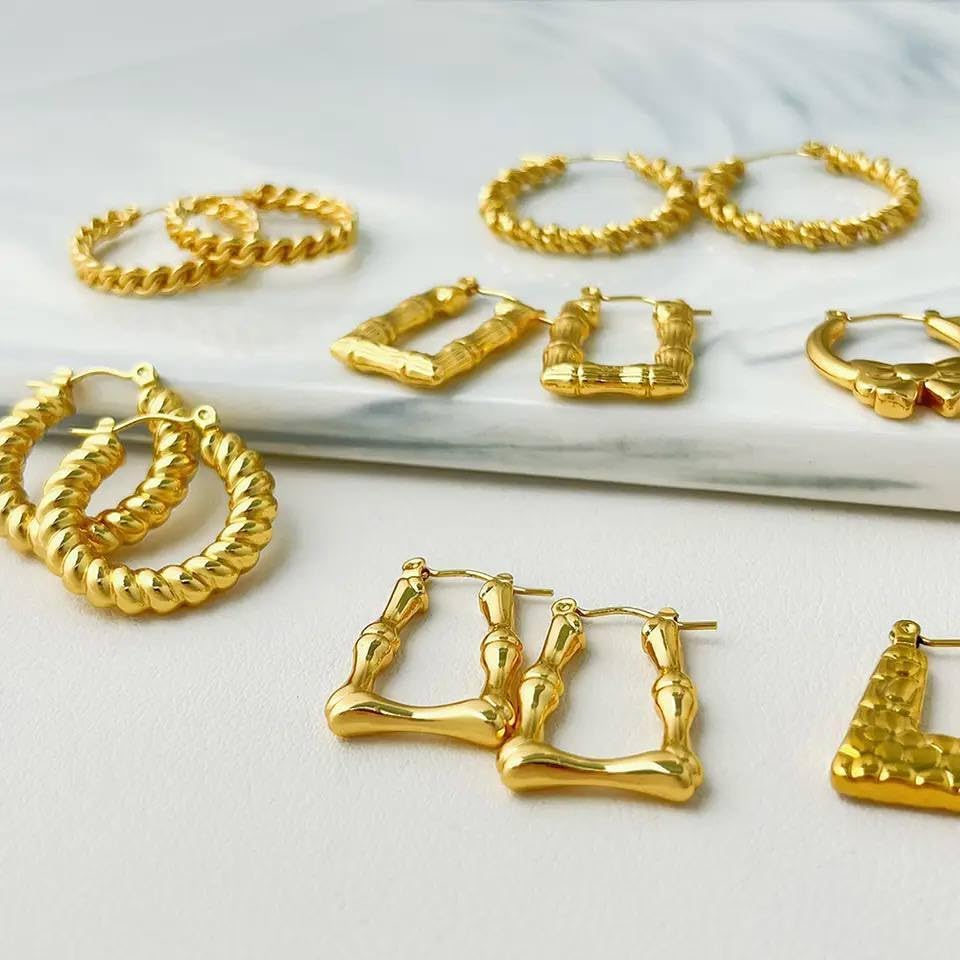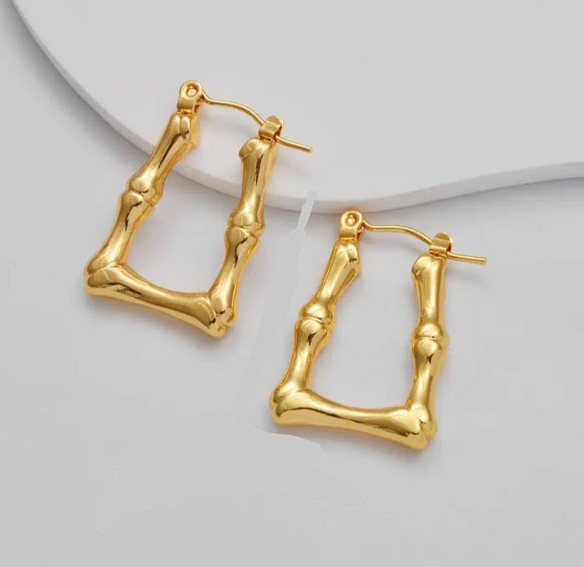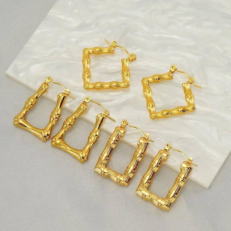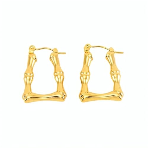 Generic - اقراط حلقية بتصميم هندسي من الخيزران مصنوعة الستانلس ستيل للنساء ابداعية شخصي هدية مجوهرات معدن ذهبي