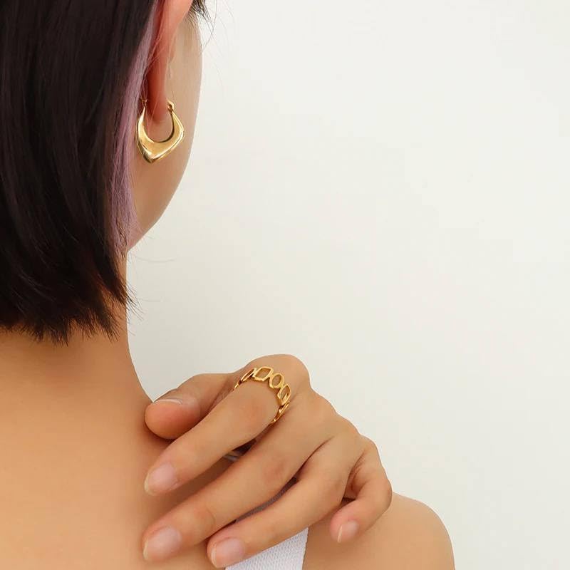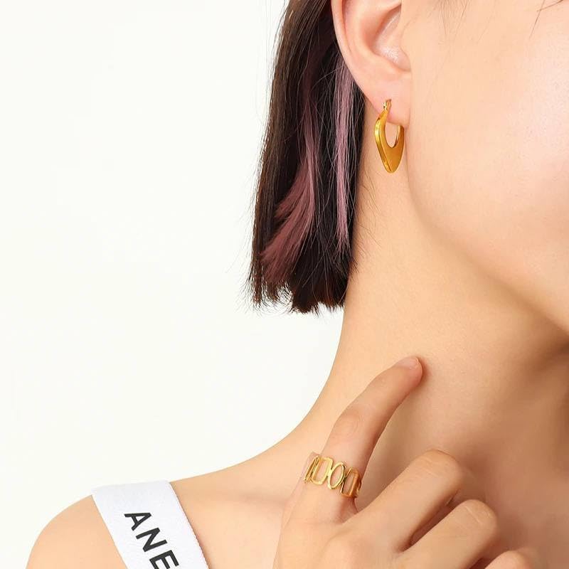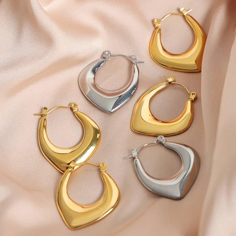 Generic - اقراط هندسية من الستانلس ستيل لامعة على شكل شنطة للنساء، معدن، ذهبي