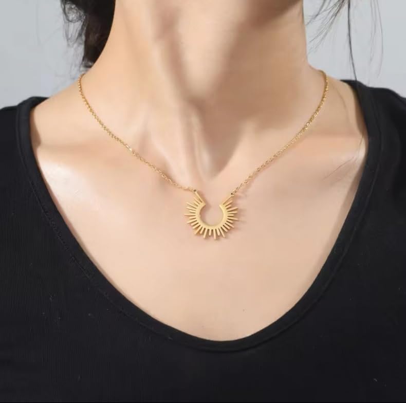 Generic - Stainless Steel Geometric Sun Necklace for Women Daily Use (1 Piece Geometric Sun Necklace)-by RanaStore