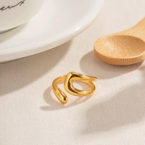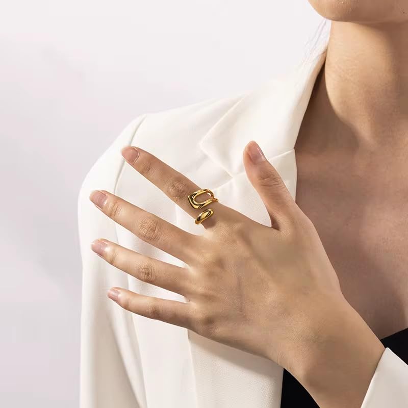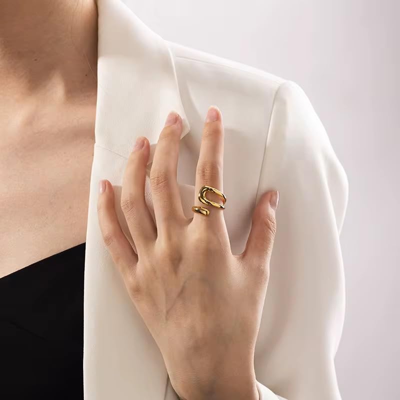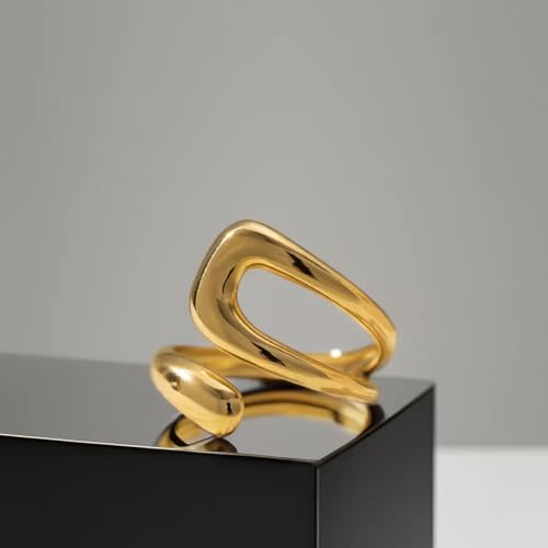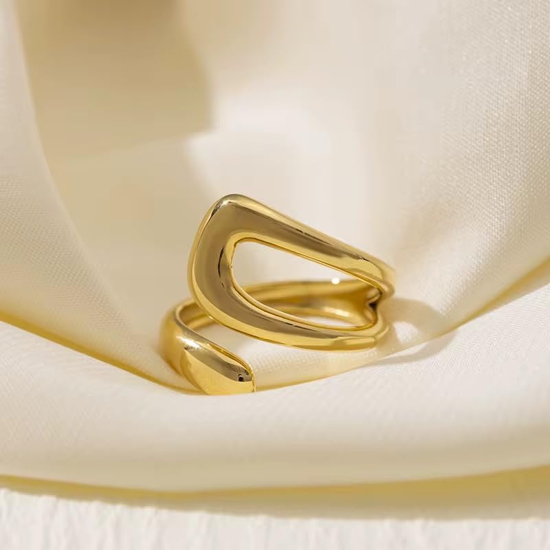 Generic - "خاتم مفتوح من الستانلس ستيل مطلي بالذهب بتصميم عصري تجريدي - قابل للتعديل وانيق للارتداء اليومي."