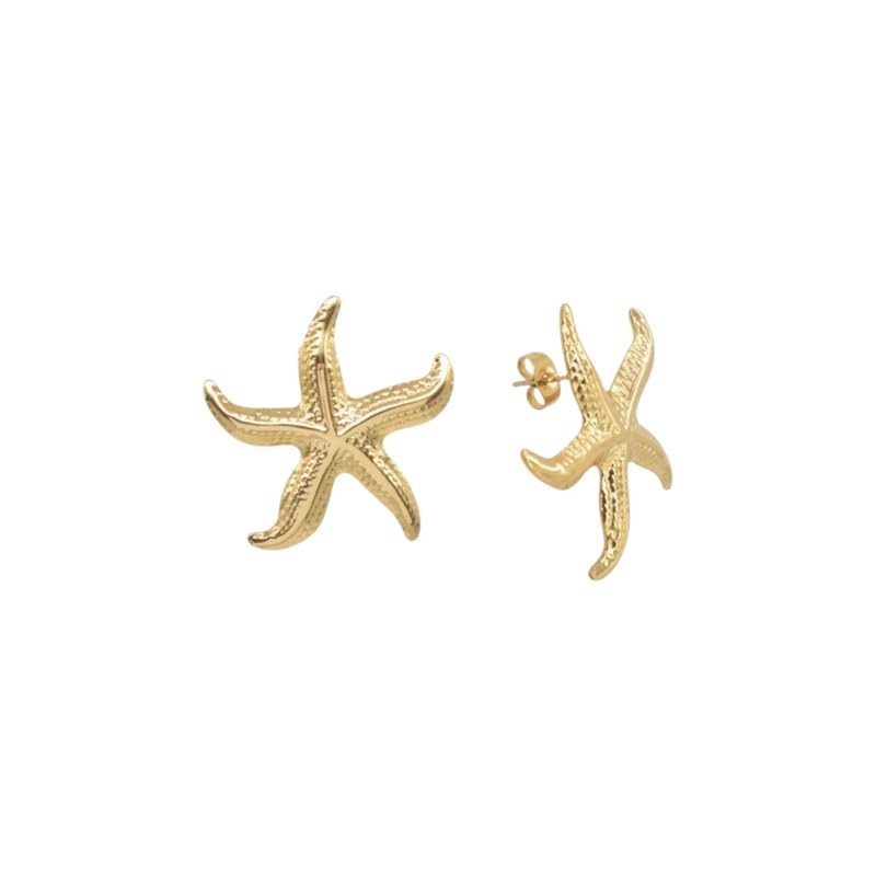 Generic - Stainless Steel Gold-Tone Curved Starfish Stud Earrings for Women - Gold