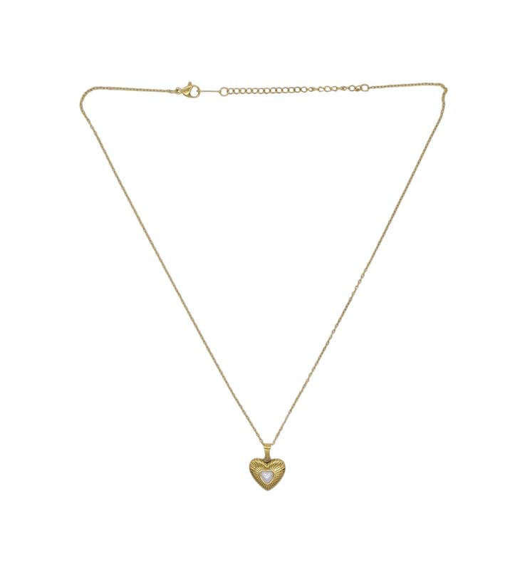 Generic - عقد بقلادة على شكل قلب من الستانلس ستيل بلون ذهبي للنساء - ذهبي