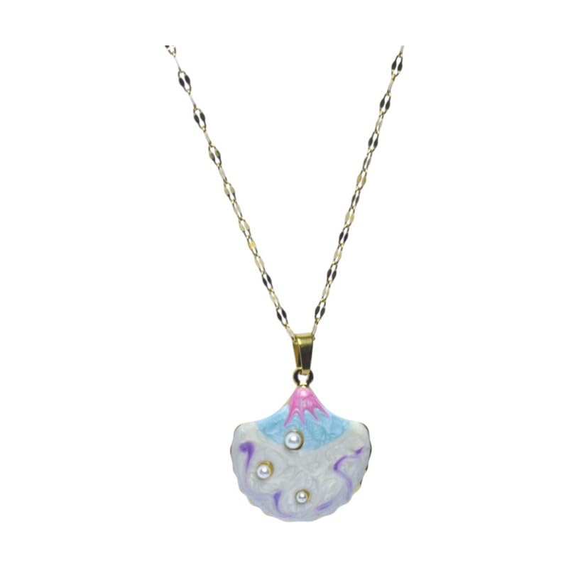 Generic - Stainless Steel Gold-Tone Scallop Shell Pendant Necklace For Women - Purple Gold
