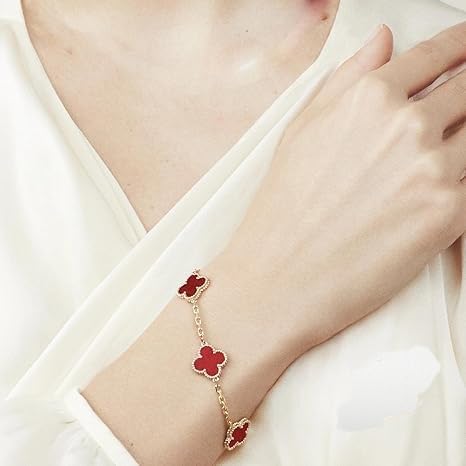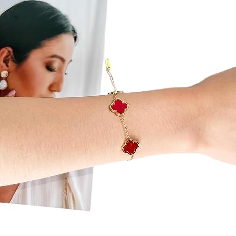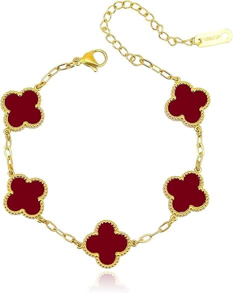 Generic - سوار برسيم ذهبي من الستانلس ستيل مع مينا بورغندي بطول 18 سم