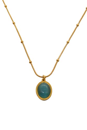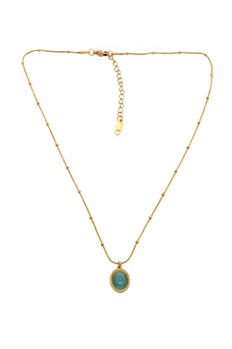 Generic - Stainless Steel Green Stone Pendant Necklace For Women - Gold