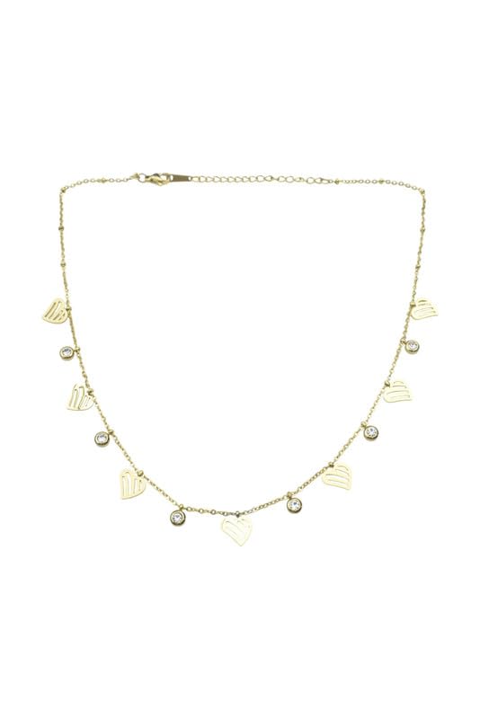 Generic - Stainless Steel Heart & Crystal Station Necklace for Women - Gold