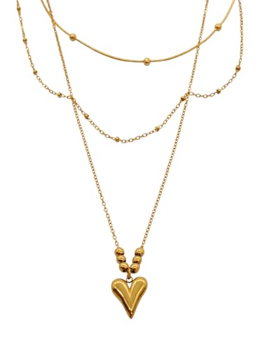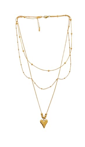 Generic - Stainless Steel Heart Pendant Multi-Layered Necklace For Women - Gold