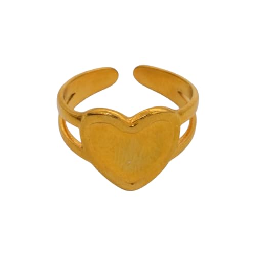 Generic - Stainless Steel Heart Shaped Women's Ring, Free Size - Gold FA380